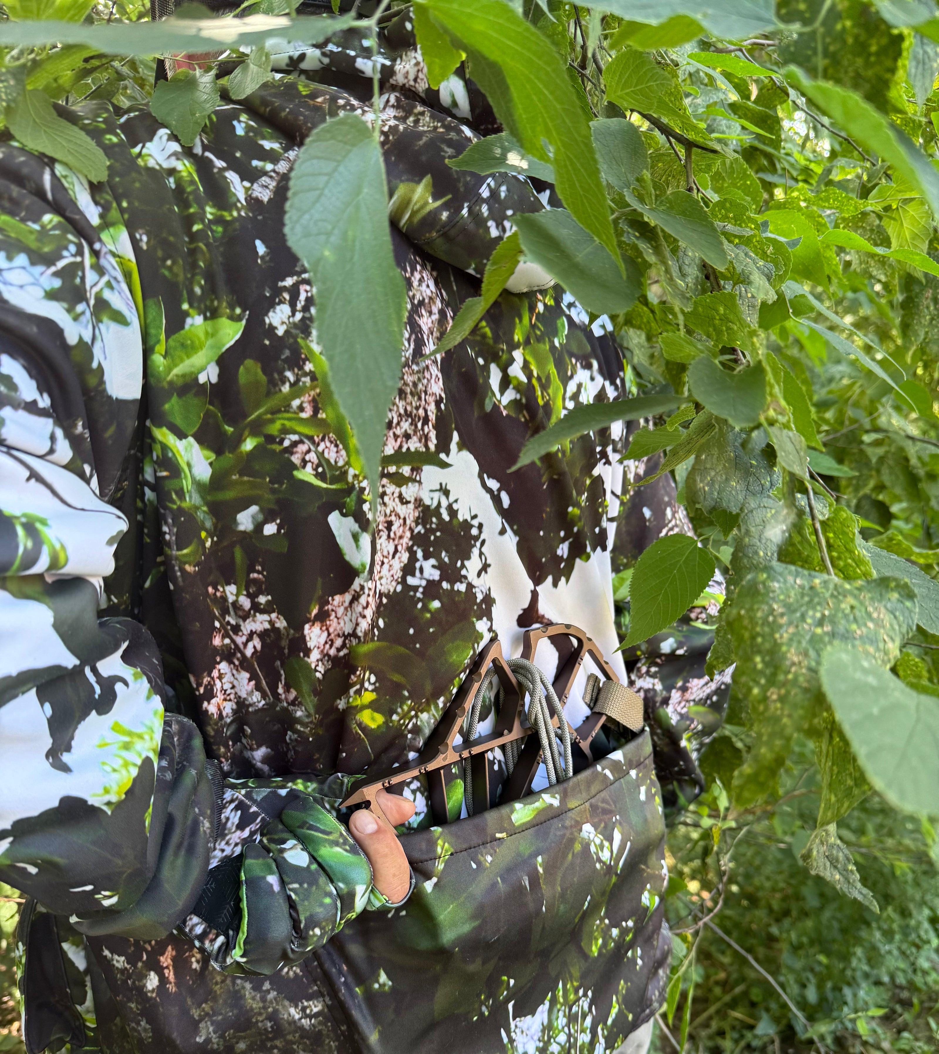 Built into both sides of every hoodie and coat-perfect for ropes, gloves, rangefinders, or anything you need quick and quiet. No fumbling, no noise.